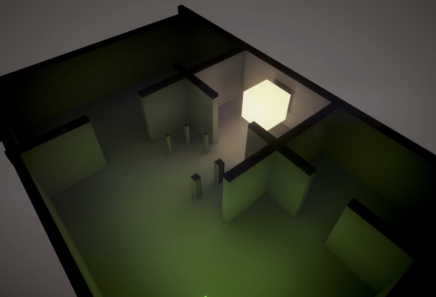 Realtime GI below.. looks better, fancy that. It really does prefer lots of smaller models than huge ones interacting with smaller ones.